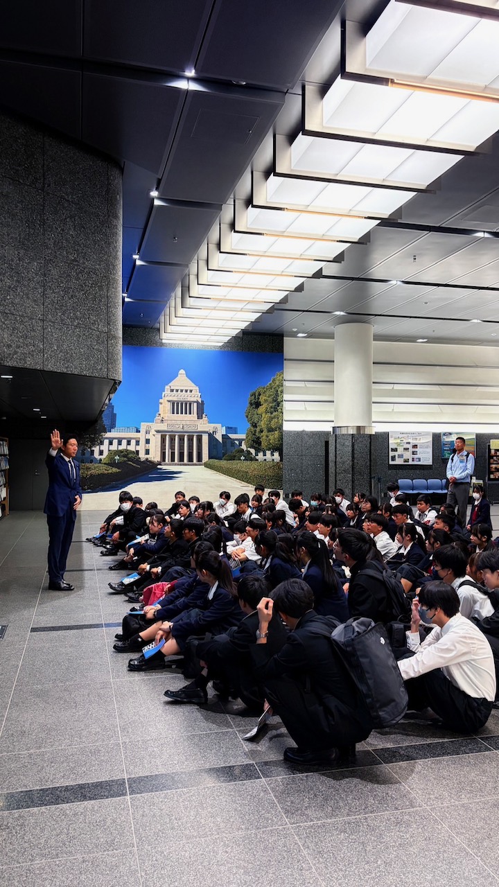 午前中は、国会議事堂へ見学に行きました。その時、衆議院議員の塩崎 彰久さんから丁寧な説明を頂きました。ありがとうございました。