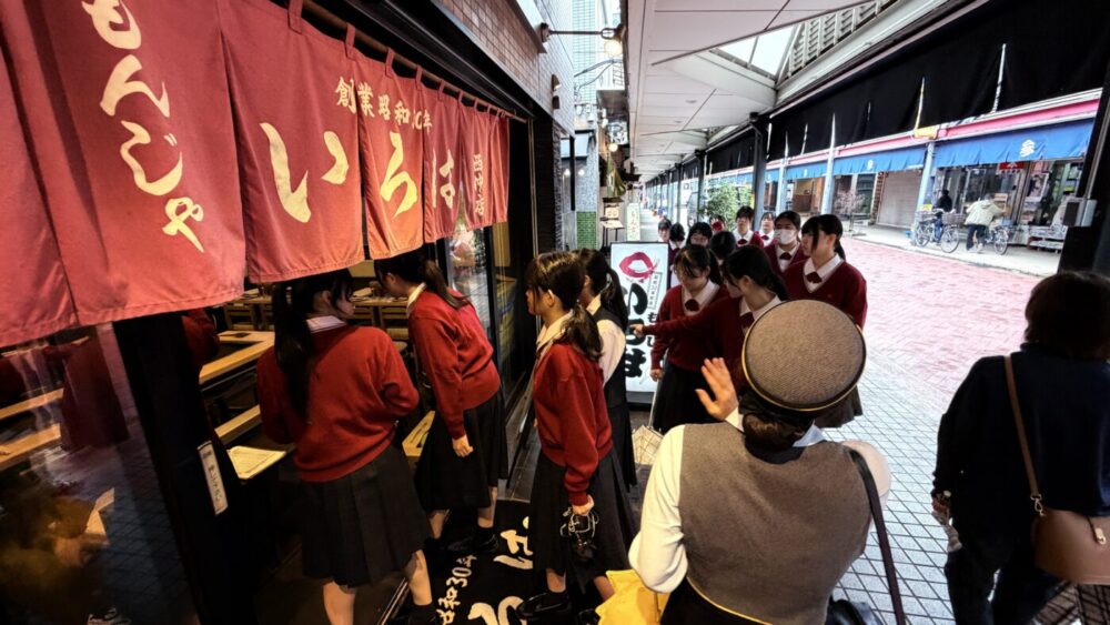 昼食には月島で本場のもんじゃ焼きを堪能しました。お腹いっぱい!