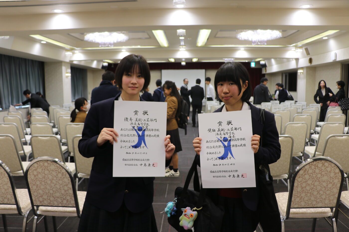 TOP > 今日の済美 > 大会実績 > 【美術科】第39回愛媛県高等学校総合文化祭 美術・工芸部門結果報告11月15日 お知らせ今日の済美 2025.11.19 【美術科】第39回愛媛県高等学校総合文化祭 美術・工芸部門結果報告11月15日 大会実績 第39回愛媛県高等学校総合文化祭 美術・工芸部門において、下記の賞を受賞しました 優秀賞 2年 田中 悠愛「6:30」日本画作品 奨励賞 2年 多田 海奏「十六、十七」洋画作品 優秀賞を受賞した田中悠愛は、第50回全国高等学校総合文化祭 あきた総文祭2026 美術・工芸部門に出場します。 優秀賞 2年 田中 悠愛「6:30」 奨励賞 2年 多田 海奏「十六、十七」 今日の済美一覧 新着記事 2025.11.19 【美術科】第39回愛媛県高等学校総合文化祭 美術・工芸部門結果報告11月15日 大会実績 2025.11.18 【写真部】11/15 愛媛県高文祭写真部門講演会・表彰式 写真部の作品 2025.11.18 【写真部】11/14 二の丸庭園ライトアップ撮影 写真部の作品 2025.11.17 【国際コース】11/13・14 1年生英語宿泊研修 学校行事 FIND!キーワードやタグで検索! 合唱部 テニス部 弓道部 模擬国連 野球部 PTA 校外スポーツ活動 食物科学コース 美術科 写真部の作品 オープンスクール 大会実績 コンテスト キャリア教育講座 学校行事 卒業生の活躍 アート&デザイン作品