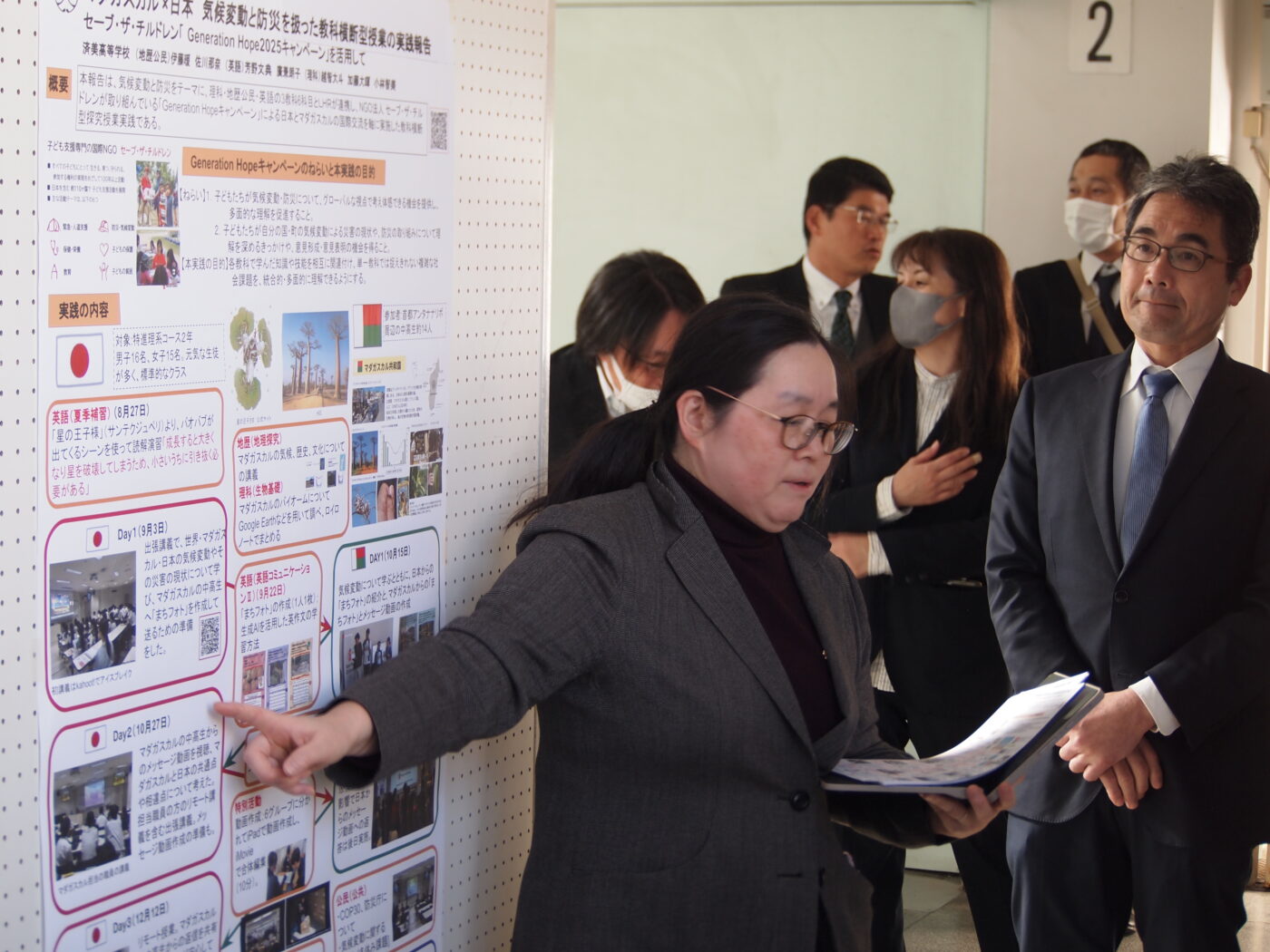 12月22日(月)、松山北高校で開催された愛媛県高等学校教育研究大会・理科部会で、自然科学部・宇宙班Bの生徒たちが高校の理科の先生方に向けて研究発表を行いました。これは、11月に開催された愛媛県高等学校総合文化祭・自然科学部門で愛媛県代表になり、全国高等学校総合文化祭に出場することになった「火星環境で地球の微生物による有機物の合成は可能か?」という研究です。発表した生徒は2年の土岐璃幸、村田奈々美、1年の松村千尋の3人でした。