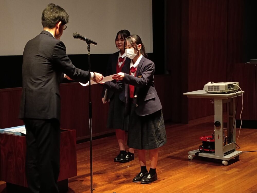県美術館講堂にて受賞式があり、そのあと審査員の東京工芸大写真学科教授の勝倉先生により受賞者の作品講評がありました。作品制作おける考え方、被写体の切り取り方、コンテストにおける評価基準など貴重なお話がたくさん聞けて、生徒たちにとってもとても良い勉強になったと思います。