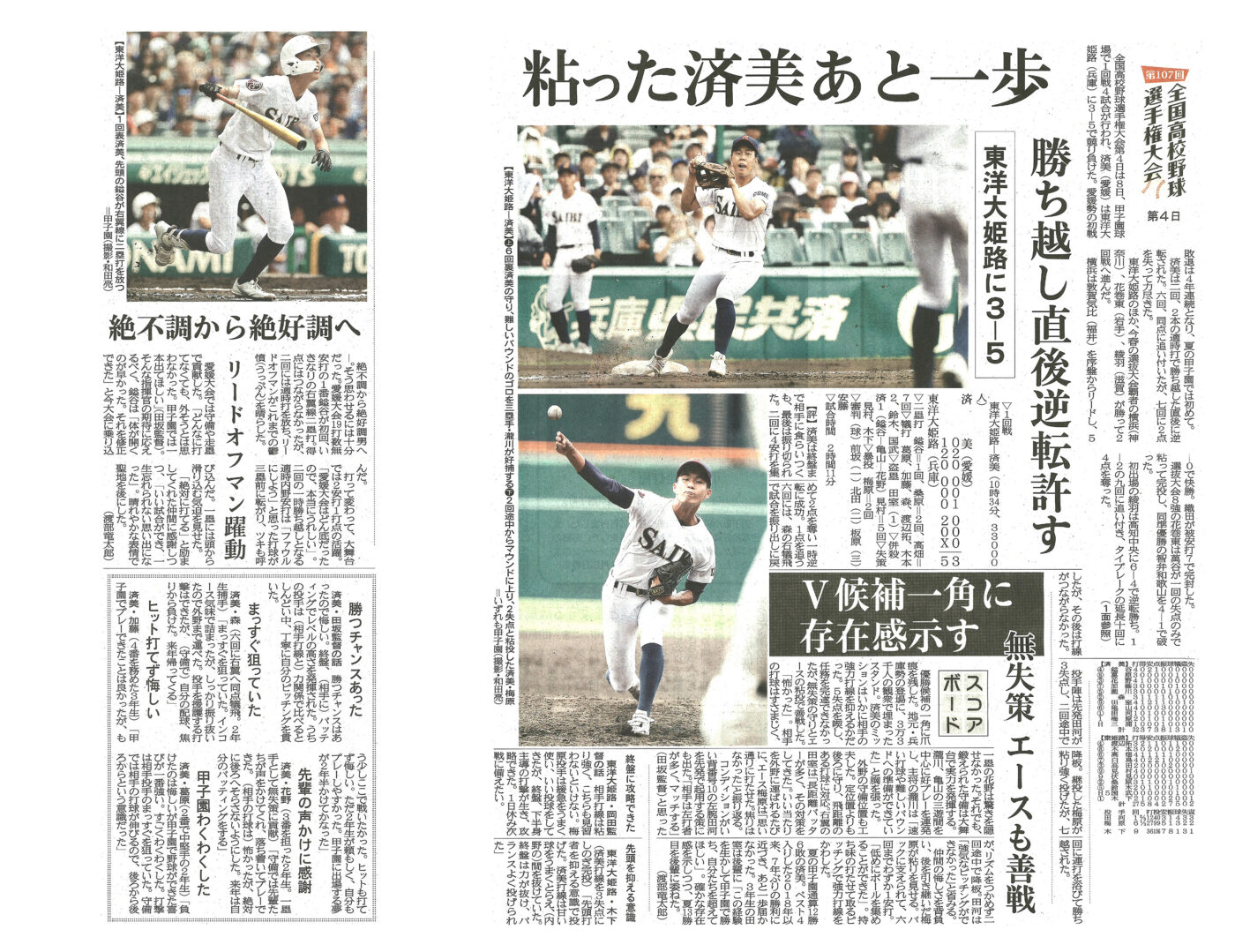 第107回全国高校野球選手権大会第4日 粘った済美あと一歩 東洋大姫路に3‐5
