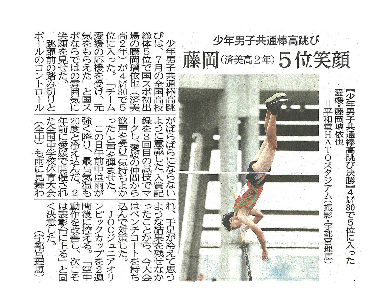 少年男子共通棒高跳びは初出場の藤岡璃依也選手(済美2年)が4メートル80で5位に入りました