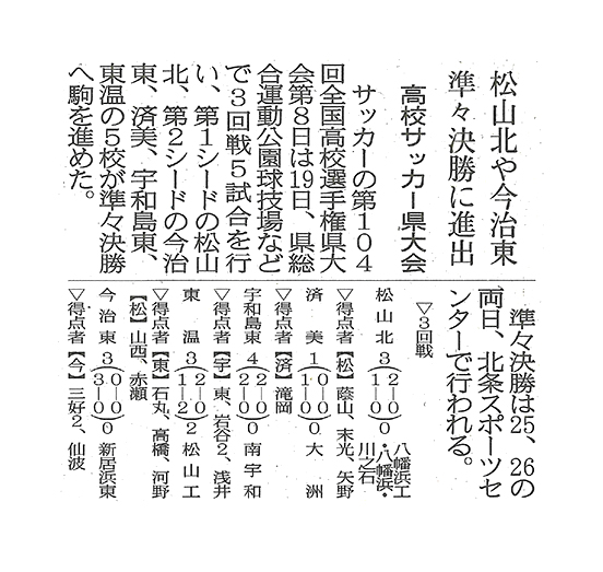 サッカーの第104回全国高校選手権県大会第8日は19日県総合運動公園球技場などで行われました。