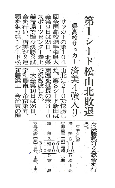 全国高校サッカー選手権県大会 済美、第1シード松山北に快勝し4強