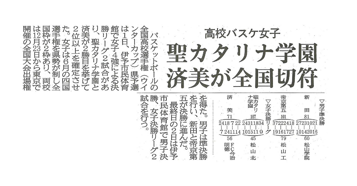 高校バスケ(ウインターカップ)県予選 女子は済美と聖カタリナ学園が全国切符