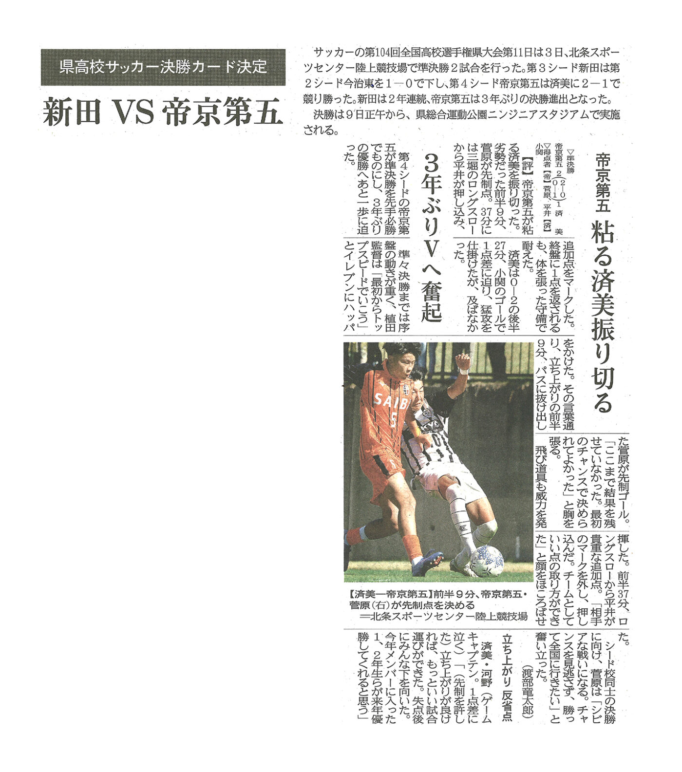 全国高校サッカー県大会準決勝 帝京第五 粘る済美振り切る