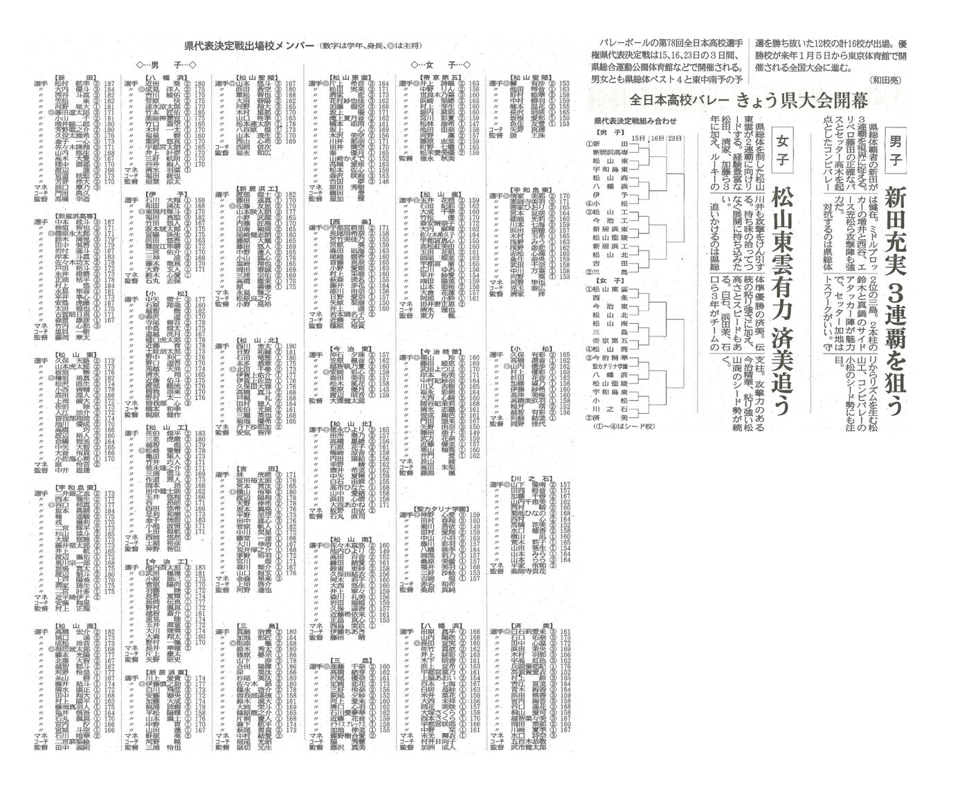 バレーボールの第78回全日本高校選手権県代表決定戦は15・16・23日の3日間、県総合運動公園体育館などで開催されます。