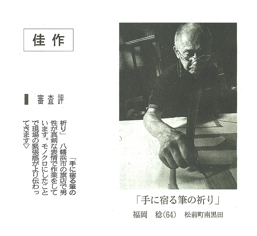 TOP > 新聞報道より > スポーツ > 読者の写真[佳作]「手に宿る筆の祈り」 お知らせ新聞報道より 2025.11.20 読者の写真[佳作]「手に宿る筆の祈り」 愛媛新聞の「読者の写真」で本校教員の福岡 稔先生の作品「手に宿る筆の祈り」が佳作に選ばれました。 2025年11月20日(木) | 愛媛新聞掲載(掲載許可番号:d20251120-06) 新聞報道一覧 新着記事 スポーツ 2025.11.20 読者の写真[佳作]「手に宿る筆の祈り」 スポーツ 2025.11.18 県高校新人大会 剣道・卓球 スポーツ 2025.11.18 高校選抜テニス四国予選 女子・済美が準V スポーツ 2025.11.18 全国高校バスケ 来月23日開幕 1回戦組み合わせ 済美×福島東稜 FIND!キーワードやタグで検索! 合唱部 テニス部 弓道部 模擬国連 野球部 PTA 校外スポーツ活動 食物科学コース 美術科 写真部の作品 オープンスクール 大会実績 コンテスト キャリア教育講座 学校行事 卒業生の活躍 アート&デザイン作品