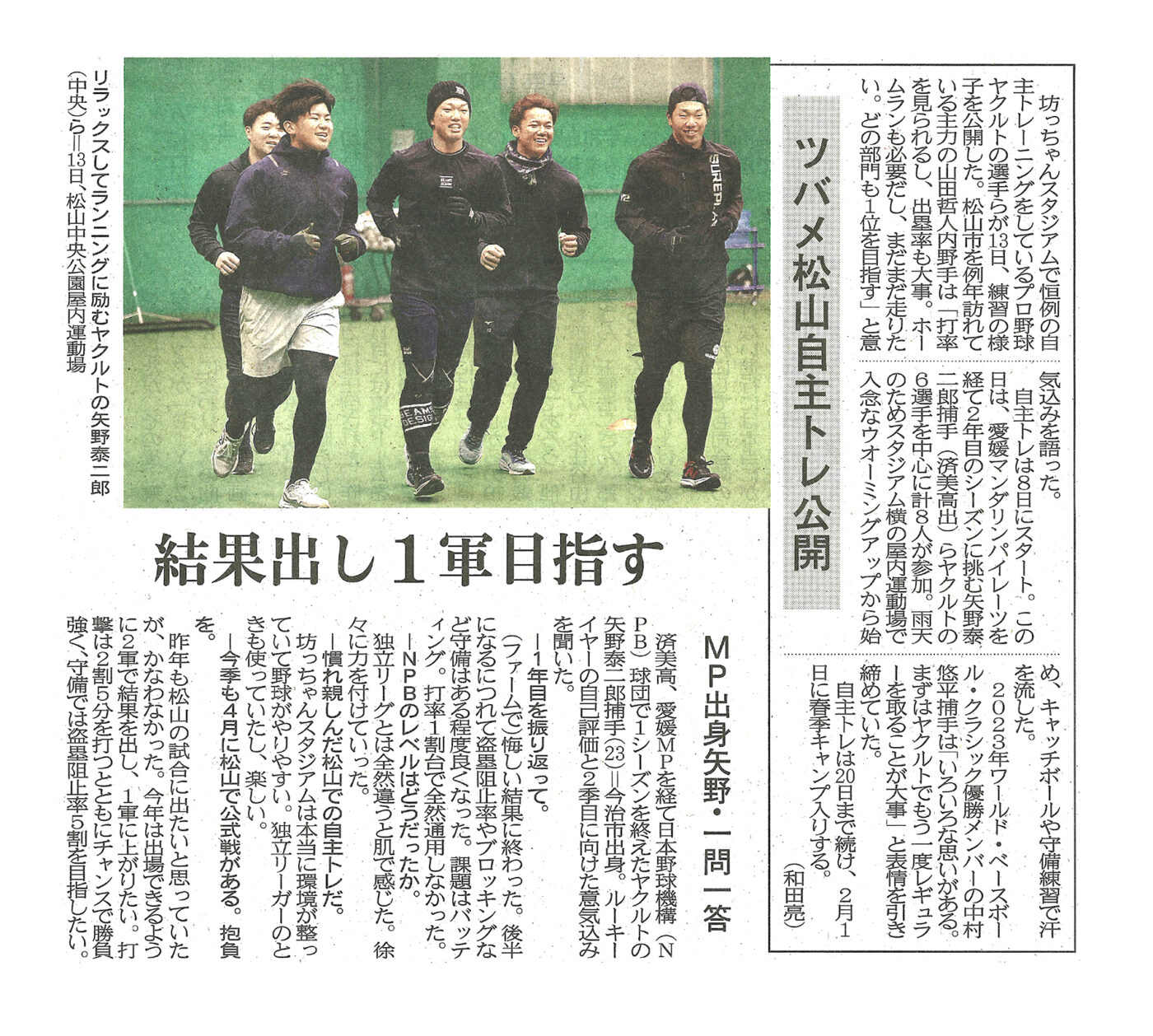 ヤクルト選手が松山で自主トレ公開 「結果出し1軍目指す」愛媛MP出身・矢野捕手