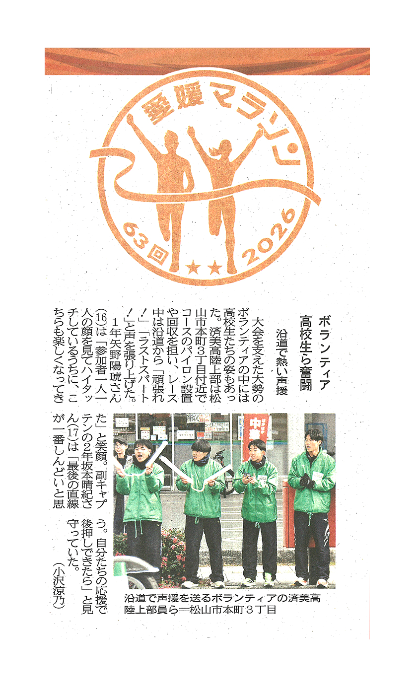2月1日第63回愛媛マラソンが開催され済美高校陸上部がボランティアで参加しました。