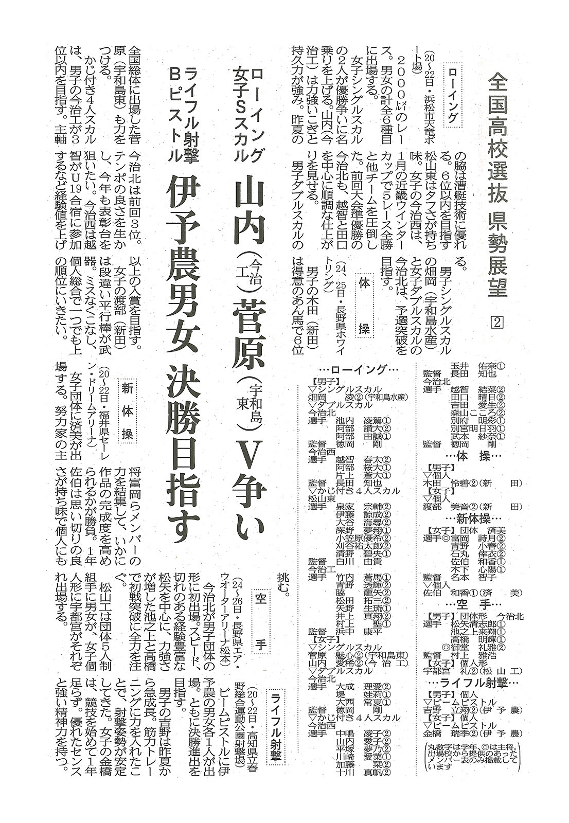 愛媛新聞の「全国高校選抜 県勢展望2」で新体操部が紹介されました。